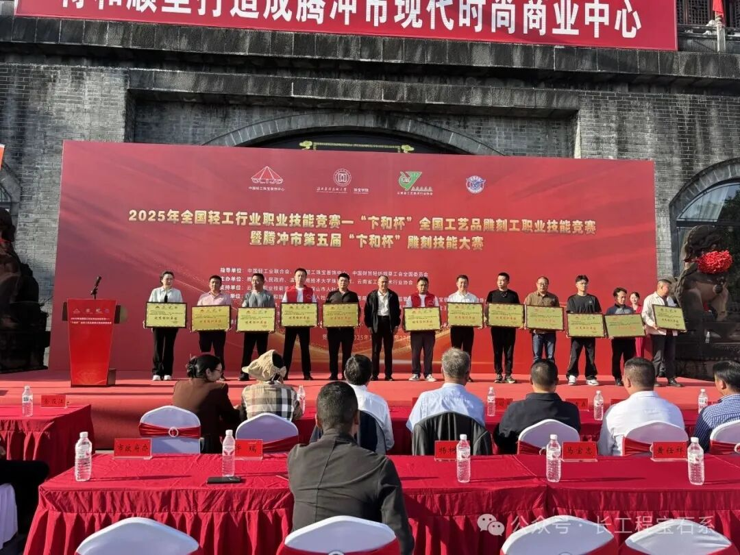 10月27日,2025年全国轻工行业职业技能竞赛——“卞和杯”全国工艺品雕刻工职业技能竞赛暨腾冲市第五届“卞和杯”雕刻技能大赛圆满闭幕。